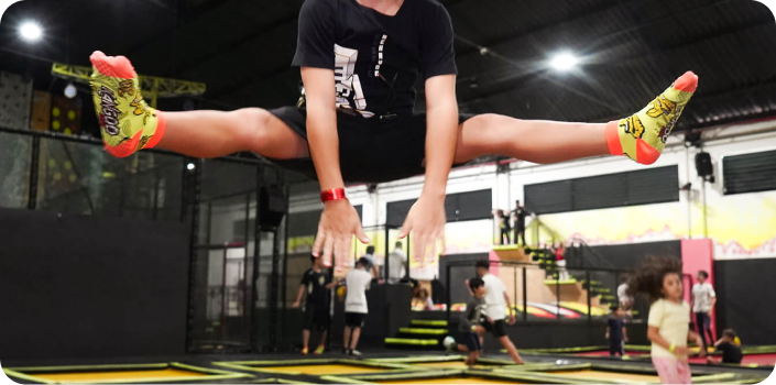 (trampolim, escalada, boliche*, meia antiderrapante)